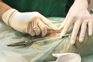 הניתוח מתבצע בהרדמה מלאה, אשר כוללת 3 שלבים: שלב ראשון של זריקה לשריר עבור שיכוך כאבים וטשטוש קל, אחריה יוכנס וונפלון לוריד ממנו יילקחו בדיקות הדם ודרכו יוזרמו נוזלים במהלך הניתוח וההתאוששות. לאחר קבלת תוצאות בדיקות הדם, יחל השלב השני של ההרדמה בה תינתן זריקה לוריד אשר תרדים את הכלבה לדקות ספורות בלבד. שלב זה נועד על מנת לאפשר הכנסה של טובוס (צינור הנשמה) לקנה הנשימה וחיבור המטופלת למכונת ההרדמה בגז. השלב השלישי כאמור הוא המשך ההרדמה בסיוע מכונת הרדמה אשר מזרימה גז (איזופלוראן) עם 100% חמצן ושומרת על הרדמה רציפה. היתרונות בסוג זה של הרדמה הם מהירות פינוי הגז מהגוף, שליטה על עומק ההרדמה ובטיחות ההרדמה. במהלך שלב זה, המטופלת מחוברת למוניטור (פולס אוקסימטר) אשר מראה בזמן אמת את קצב הלב ורוויית החמצן בדם.